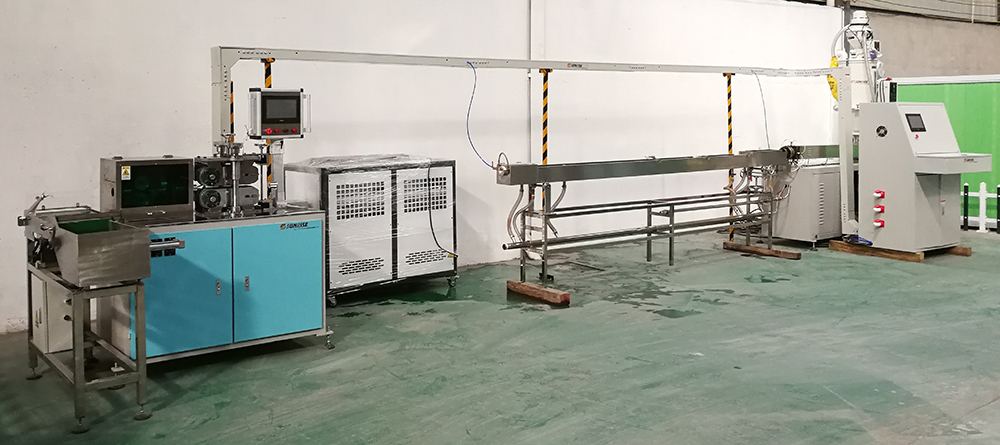 The Full Automatic PLA Straw Extrusion Machine LG-A(50) Series is our newly developed machine in 2019 and is currently in use in the United States, Mexico and Thailand. This series solves the problem of manually measuring the inner diameter and length of the production straw. After the operator sets the length and inner diameter, the machine automatically adjusts the inner diameter and length, and can automatically control the extrusion volume of the extruder according to the production speed.